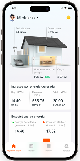 Proporciona a los propietarios de centrales eléctricas un software móvil de gestión y monitorización de energía inteligente donde puedan comprobar el estado de funcionamiento de las centrales eléctricas y de los equipos en tiempo real, y presenta de forma visual los datos de generación, almacenamiento y consumo de energía en los hogares.